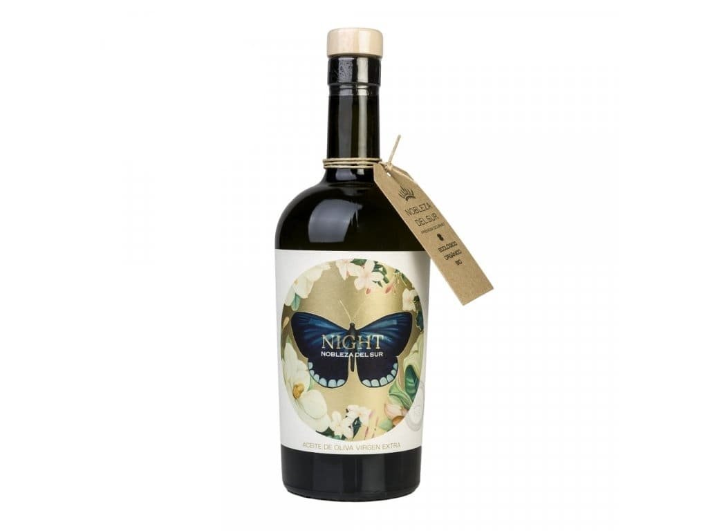 Prémiový extra panenský olivový olej Eco Night patří k TOP produktům španělské rodinné farmy Nobleza del Sur. Jedná se o olivový olej vyrobený v BIO kvalitě za dodržení nejpřísnějších ekologických standardů. Kromě pečlivého zpracování oliv si majitelka farmy dává také záležet na prvotřídním a elegantním obalu. Na láhvi je vyobrazen noční motýl, který v olivovém háji četně poletuje a opyluje květy olivovníků.