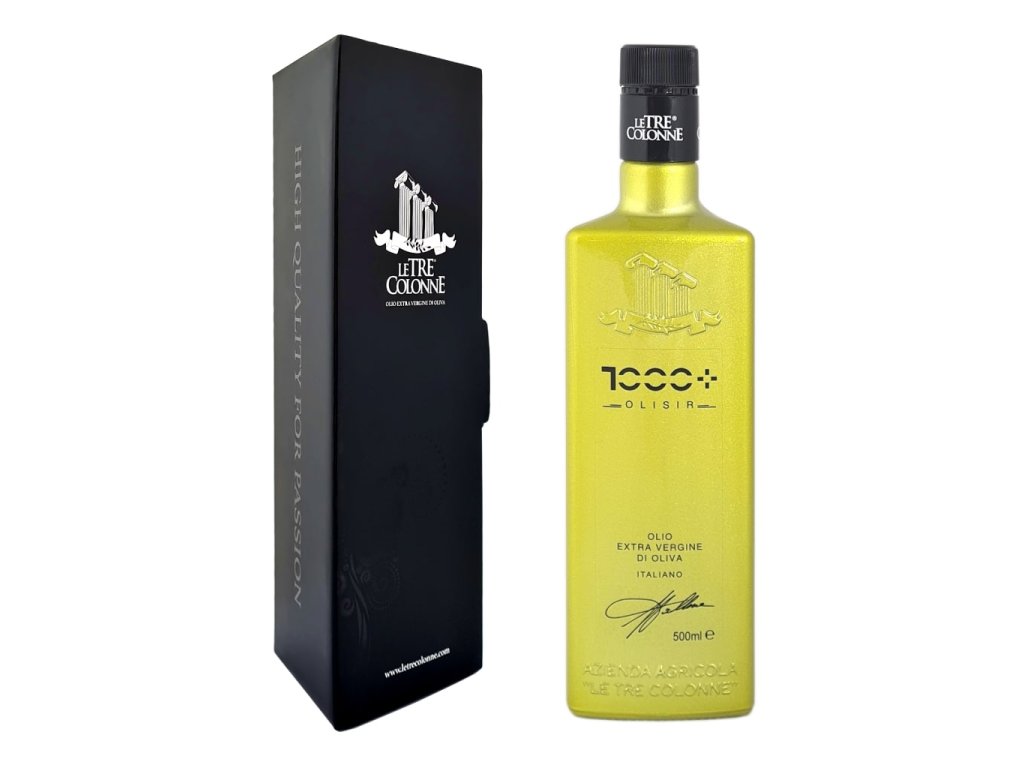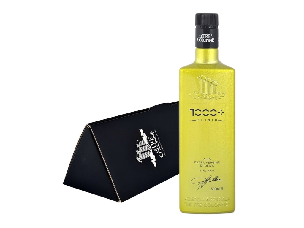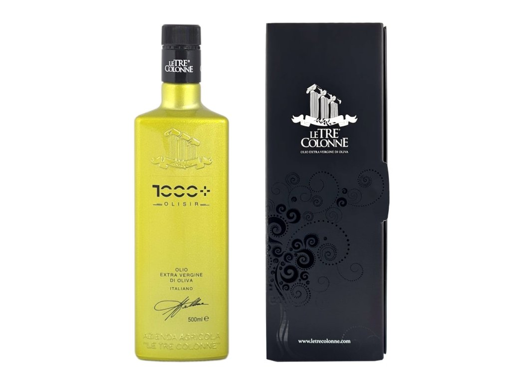 Dárkové balení Le Tre Colonne Olisir 1000+ extra panenského olivového oleje s maximem polyfenolů (sklizeň 24/25)