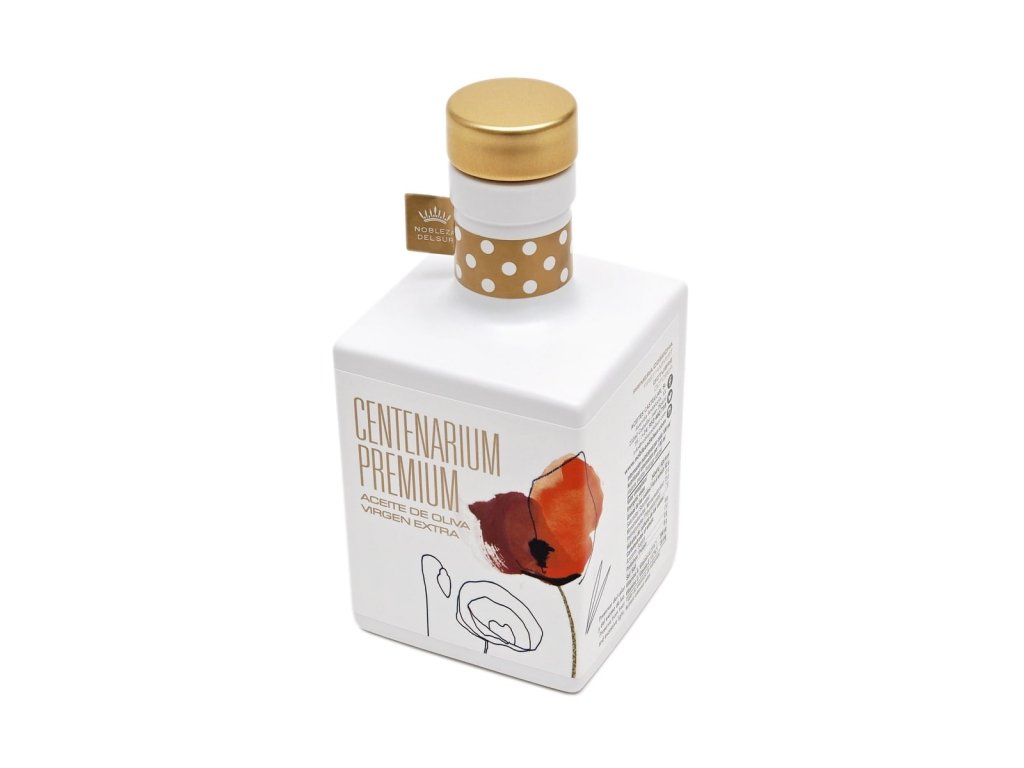 Centenarium Premium 350 ml je prémiový olivový olej zabalený do krásné designové láhve s motivy květů, které rostou v olivových hájích Nobleza del Sur. Tato španělská rodinná farma vsadila na špičkovou kvalitu olivového oleje v kombinaci s elegantním balením. Díky tomu tento extra panenský olivový olej můžete použít jako luxusní dárek, který je plný zdraví.