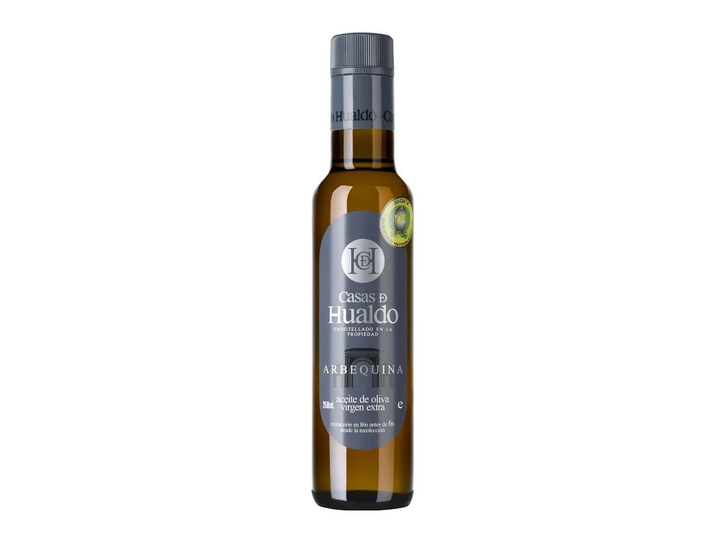 Arbequina Casas de Hualdo je harmonický, voňavý a chuťově vyvážený olej. Odrůda Arbequina pochází z Katalánska a ve Španělsku je velmi oblíbená. Je to především díky typické jemné chuti a ovocnému aroma. V Casas de Hualdo pěstují Arbequinu na různých typech půdy a v různých vzdálenostech mezi rostlinami. Díky tomu se jim daří vyrábět olivový lej excelentní chuti, který je plný různých vůní a vyznačuje se jemnou chutí s převahou ovocných tónů nad hořkými a kořenitými.