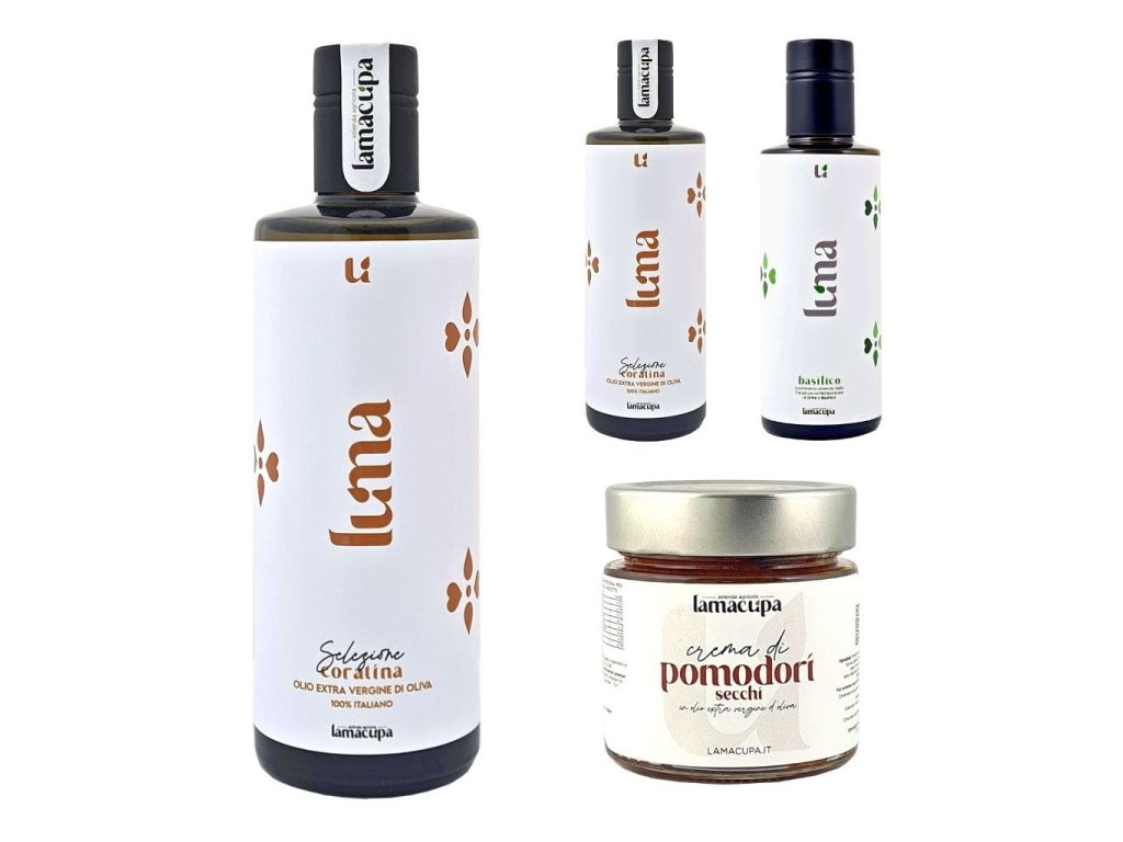 Jakmile poznáte olivovou farmu Lamacupa a jejich olivový olej blíže, dýchne na vás pozornost, vášeň a obětavost, a to v každém jednom kroku celého procesu. Od prvotní péče o olivovníky, přes sklizeň oliv a jejich přeměnu na olivový olej až po jeho stáčení a dopravu na váš stůl. „Zelené zlato“, tak Maria Rosa a Luigi nazývají svoji Coratinu. V každém gestu, v každém společném kroku zanechávají kousek duše a jak oba svorně říkají, aby nové generace mohly být pracovitýma vrásčitýma rukama vedeny do budoucnosti po stezkách minulosti.