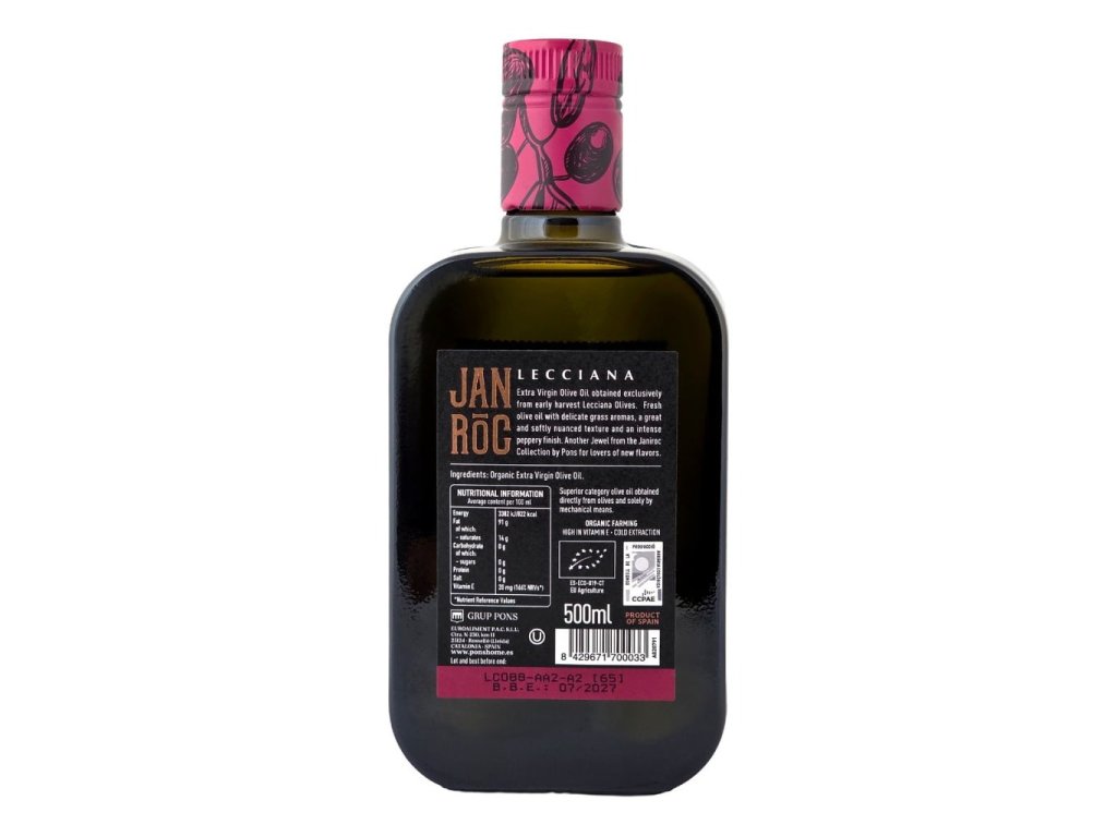 Janiroc Lecciana je intenzivní olej s výraznou osobností, určený pro skutečné gurmány. Jeho vůně je velmi bylinná a komplexní, otevírá se zelenými balzamikovými, květinovými a fíkovými tóny. Chuťový profil je odvážný a nezapomenutelný. Nabízí jasné tóny koření, jedinečnou mandlovou sladkost a dokonalou rovnováhu mezi jablečnou, citrusovou a banánovou sladkostí. Vše vrcholí intenzivním peprným závěrem. Díky svému složení má vynikající organoleptickou stabilitu, což znamená, že si své prémiové vlastnosti uchovává po dlouhou dobu. Lecciana je všestranný olivový olej do teplé i studené kuchyně. Skvělá na přípravu masa, risotta, těstovin, zeleninových salátů nebo modrých ryb. Jako dokončovací olej je ideální do dresinků a marinád. Jeho chuť exceluje na sýru burrata, masovém carpacciu, rybím tataráku, bílém mase, grilovaných jídlech, v polévkách a na zelenině.